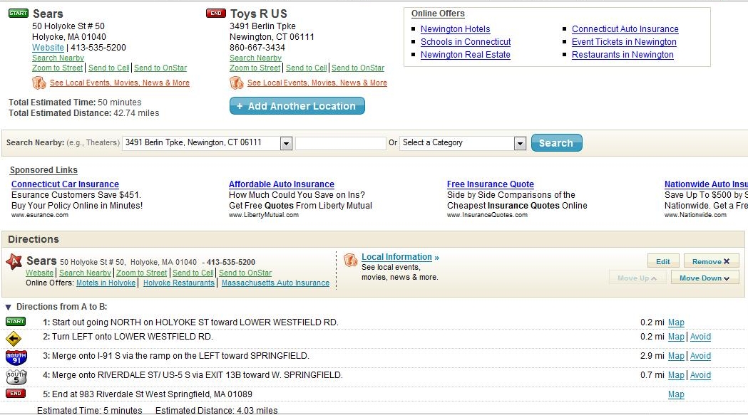 from Toys R Us located in Newington, Connecticut. (Map 3)